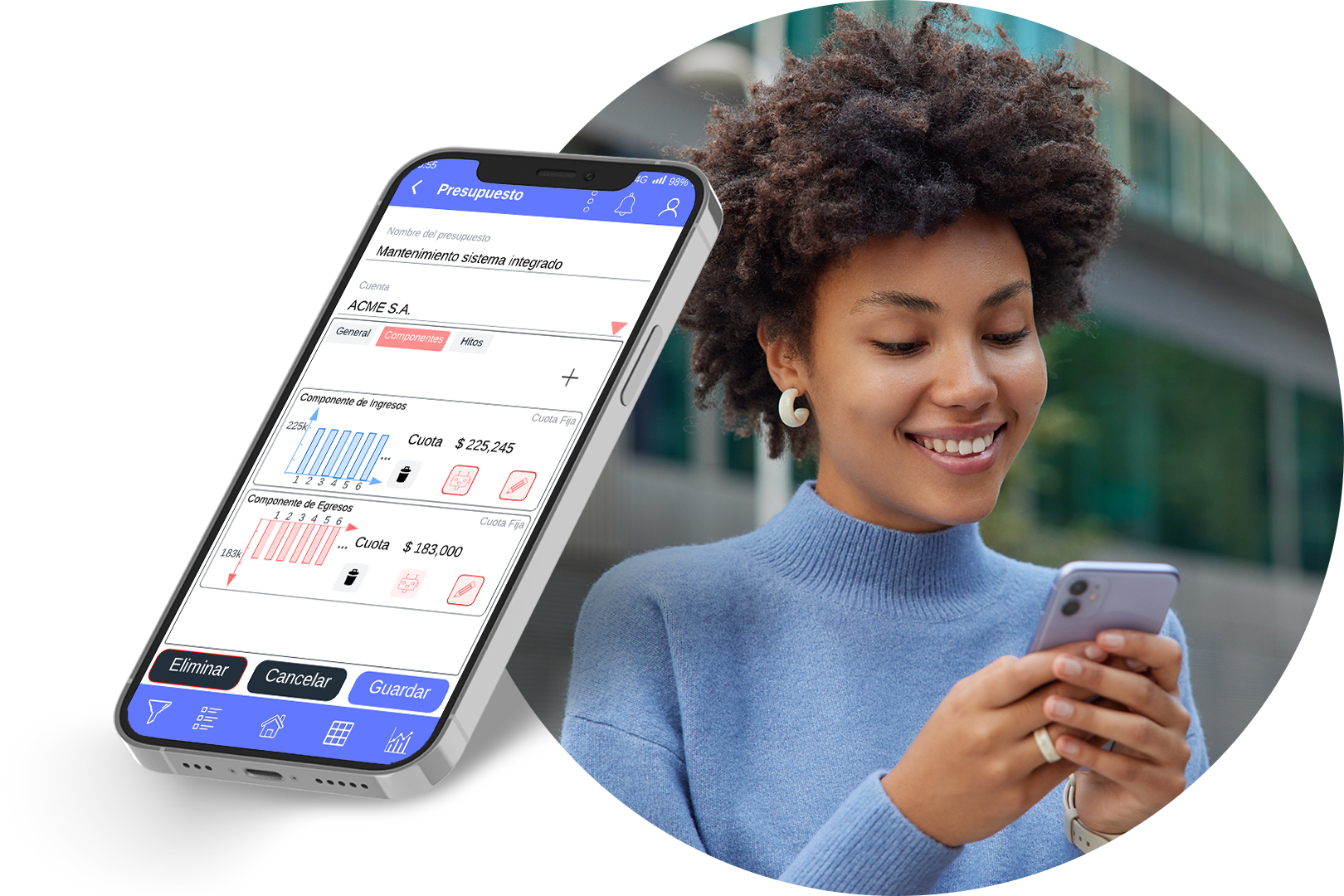 En pocos pasos defina sus presupuestos de ingresos, egresos o sus combinaciones (negocios). Establezca cantidades como una o más secuencias repetitivas de números.